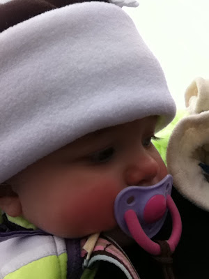 Saturday was rather CRAZY--we tried all day to get out of the house to take some pics for our Christmas cards but Abby just wasn't going to have it!! She refused to nap and was a COMPLETE train wreck... lets just say that there was a ton of crying and temper tantrums. So at 4 pm we decided to put Abby in the car and get some running done (Costco, JoAnn's, Target and food). Needless to say she took a 2 hour nap in her carseat while MJ and I took turns running into the needed stores. By this point in the day we were too tired to cook and just picked up some 'Wiches and BK for dinner. MJ got some ranch with his nuggets which Abby decided she needed in order to "dip, dip" her turkey sandwich into. Here is the result of Abby's first encounter with ranch dressing, if you listen closely you can hear her "uuuuummmmmmm" as she bites....